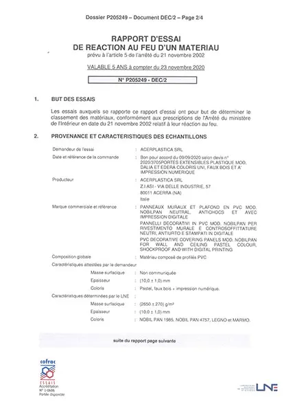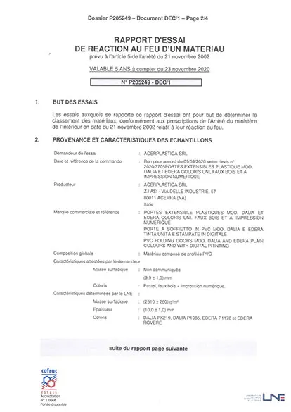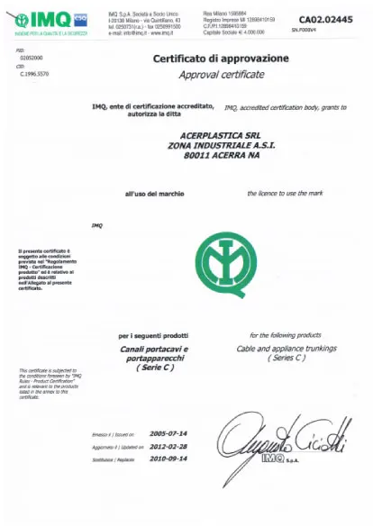 Le procedure prevedono controlli dimensionali, prove di tenuta e/o funzionali su tutta la filiera produttiva, tracciabilità dei prodotti e delle materie prime autocertificati su tutti i profili: tapparelle avvolgibili in pvc vari colori, porte a soffietto in pvc con stampe digitali, pannelli per rivestimenti murali per parete e soffitto, canaline per cablaggio elettrico e profili industriali estrusi in polimeri e tecnopolimeri.